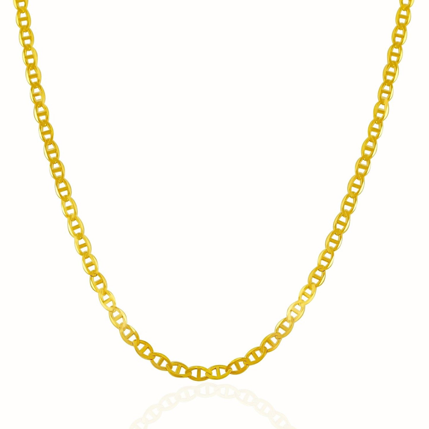 This mariner link chain comes in 14k yellow gold and has a width of 3.2 millimeters. Choose your desired length of chain.