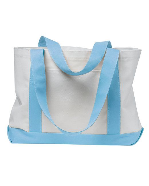 600-denier, 50% recycled polyester, 50% polyester; Two self-fabric handles; Open front pocket; Gusseted bottom; Black/ Black, Pink/ White, White/ Black, White/ Forest, White/ Lt Blue, White/ Navy, White/ Red, White/ Royal, and White/ Yellow Requires California Prop 65 Warning Label; 18.5" x 12" x 3.5"; Each year 5% of Net Operating Income is given to help support a host of social service organizations supporting the homeless, children and veterans and in need. The company supports The Greatest Gift Catalog Ever and their partner agencies. For more information on how to help support these great causes please go to WWW.TGGCE.ORG;